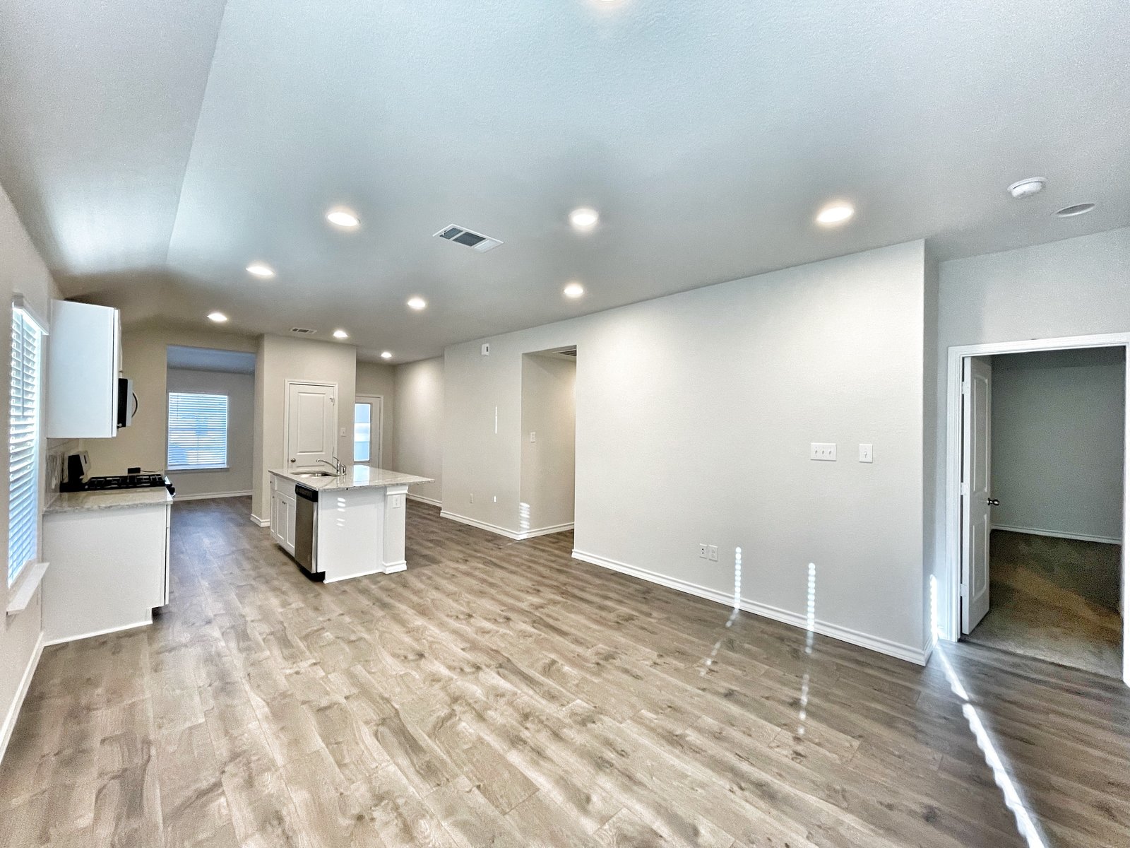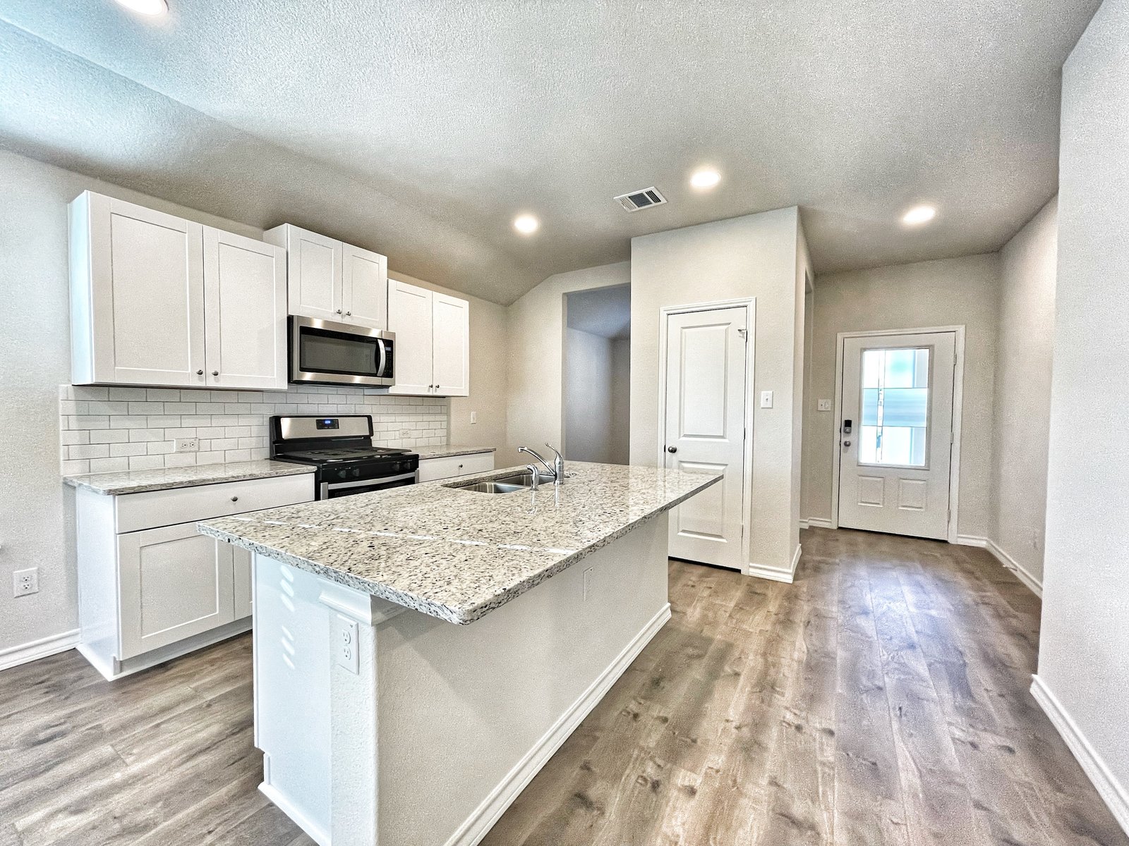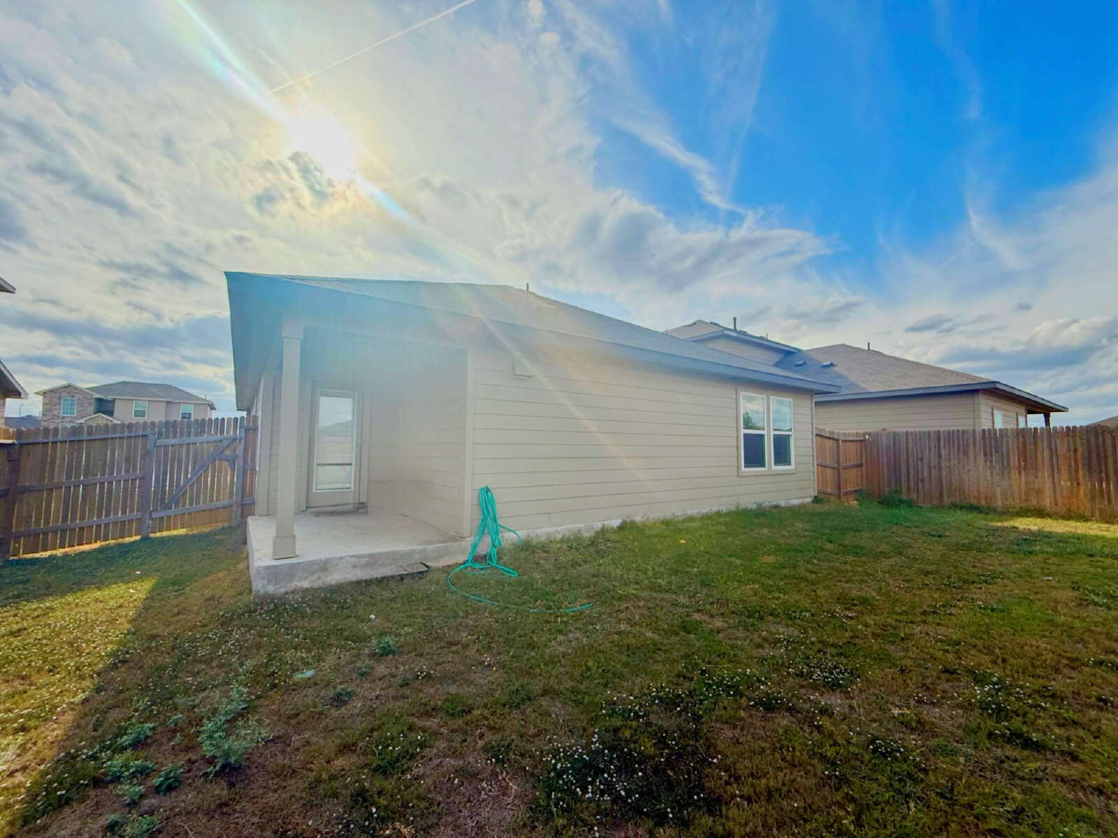 This single-story home offers an open and functional layout designed for modern living. A formal dining room sits just off the spacious kitchen, which features a breakfast bar, granite countertops, gas range, and stainless steel appliances - perfect for both everyday meals and entertaining. The inviting living area boasts recessed lighting and abundant natural light, creating a warm and comfortable space to relax or gather with friends and family. The large primary suite, located just off the living room, includes a double vanity, walk-in shower with tile surround, private toilet room, and an oversized walk-in closet. Down a separate hallway, you'll find two spacious secondary bedrooms and a full bath, offering privacy and versatility for family or guests. Enjoy outdoor living in the fenced backyard with a covered patio and full sprinkler system - ideal for weekend barbecues or quiet evenings. Conveniently located for an easy commute to San Antonio or San Marcos, and just minutes from H-E-B Plus, historic Gruene, Buc-ee's, and New Braunfels Town Center at Creekside. Residents also enjoy access to fantastic neighborhood amenities, including a community pool, playground, and upcoming connectivity to the West Alligator Creek Trail.