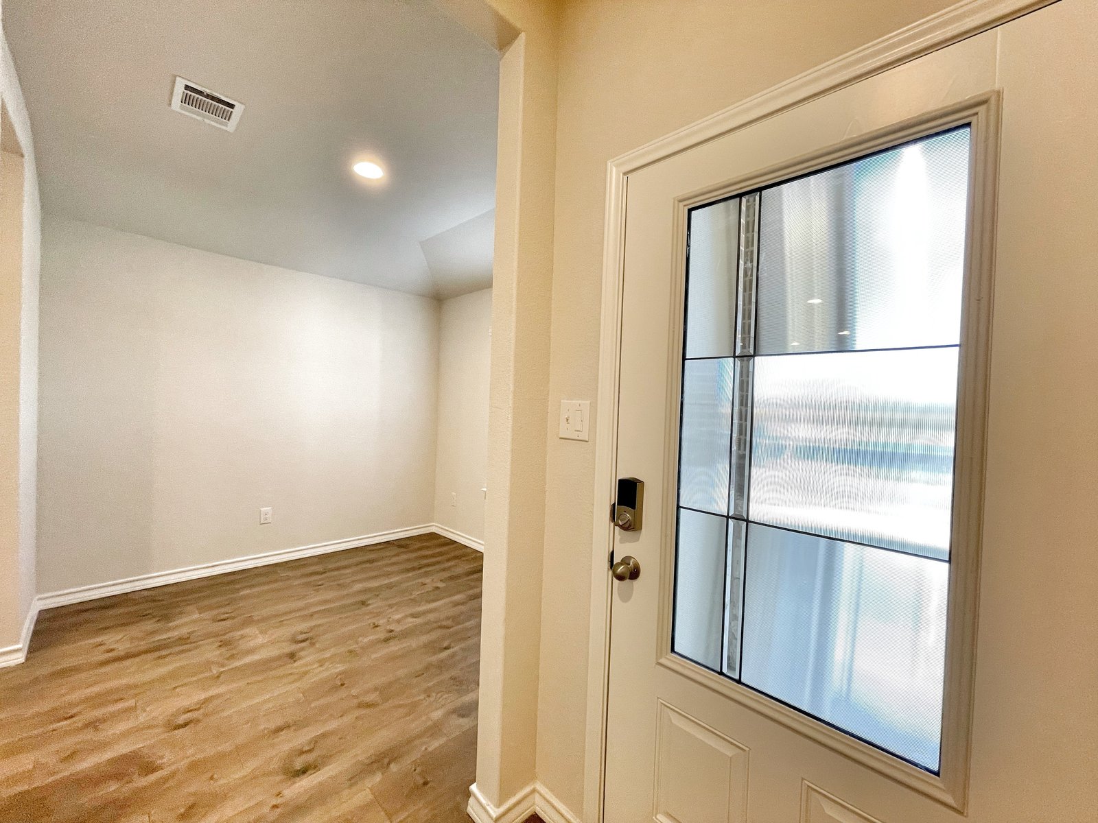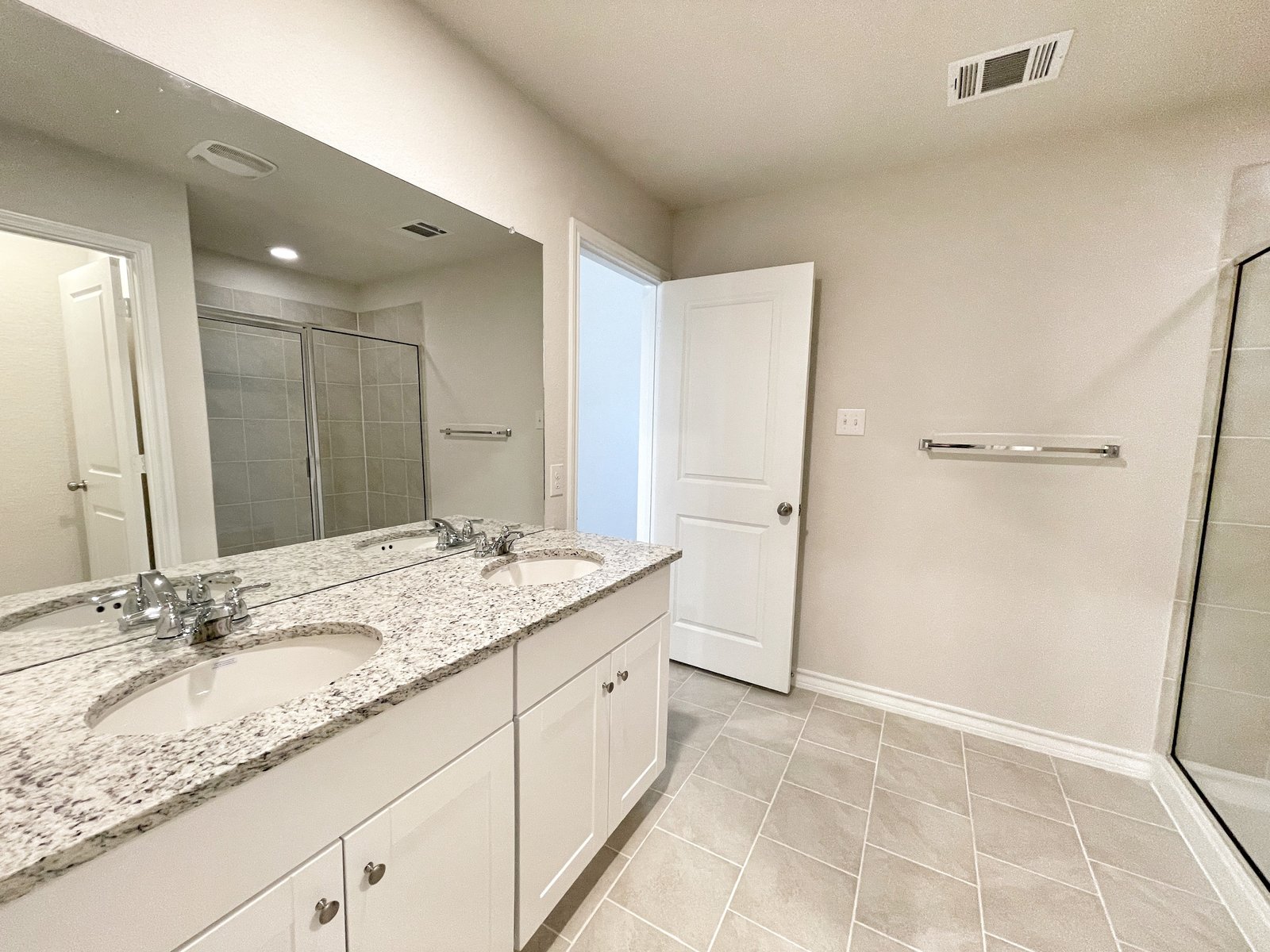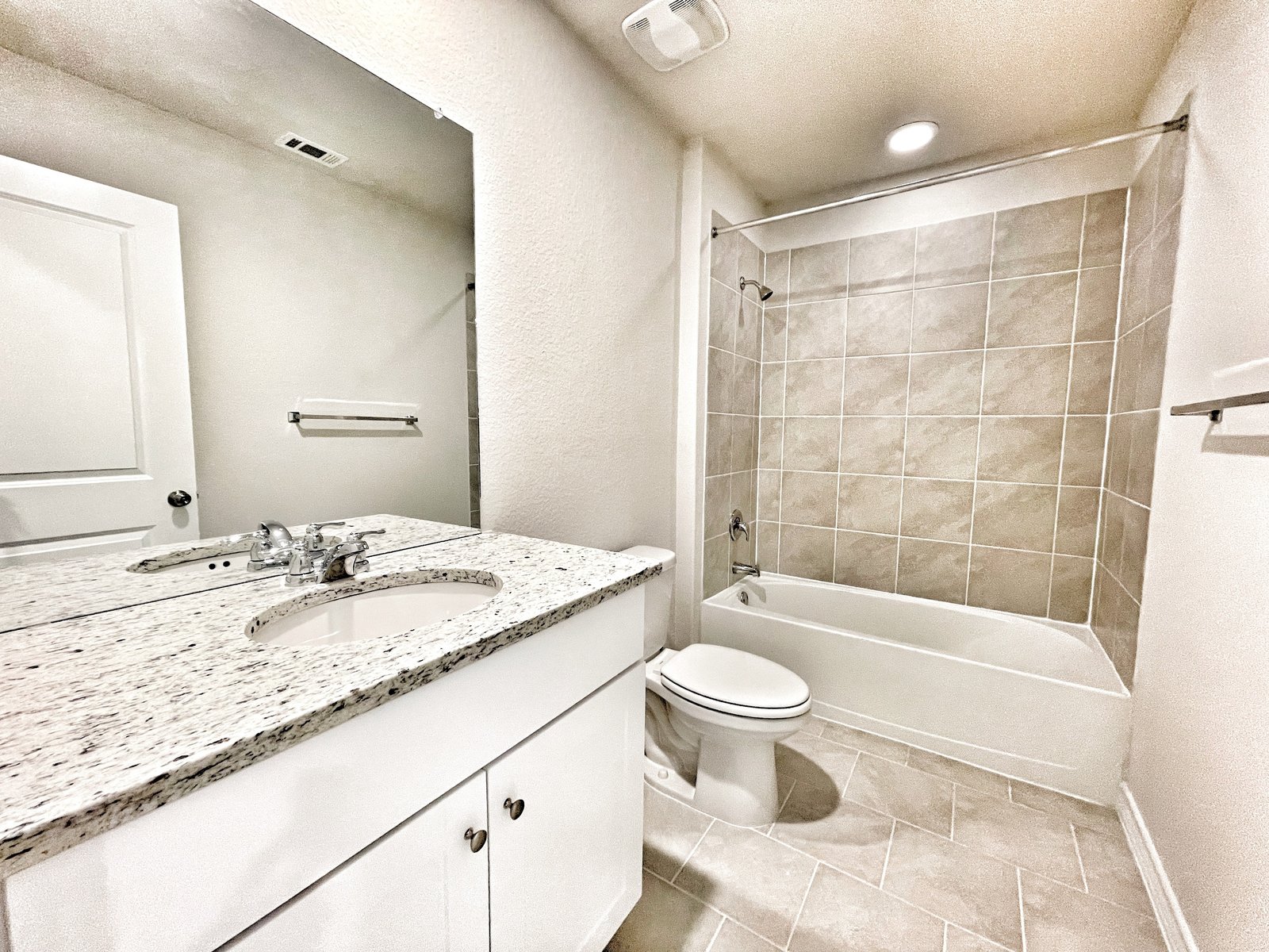 This single-story home offers an open and functional layout designed for modern living. A formal dining room sits just off the spacious kitchen, which features a breakfast bar, granite countertops, gas range, and stainless steel appliances - perfect for both everyday meals and entertaining. The inviting living area boasts recessed lighting and abundant natural light, creating a warm and comfortable space to relax or gather with friends and family. The large primary suite, located just off the living room, includes a double vanity, walk-in shower with tile surround, private toilet room, and an oversized walk-in closet. Down a separate hallway, you'll find two spacious secondary bedrooms and a full bath, offering privacy and versatility for family or guests. Enjoy outdoor living in the fenced backyard with a covered patio and full sprinkler system - ideal for weekend barbecues or quiet evenings. Conveniently located for an easy commute to San Antonio or San Marcos, and just minutes from H-E-B Plus, historic Gruene, Buc-ee's, and New Braunfels Town Center at Creekside. Residents also enjoy access to fantastic neighborhood amenities, including a community pool, playground, and upcoming connectivity to the West Alligator Creek Trail.