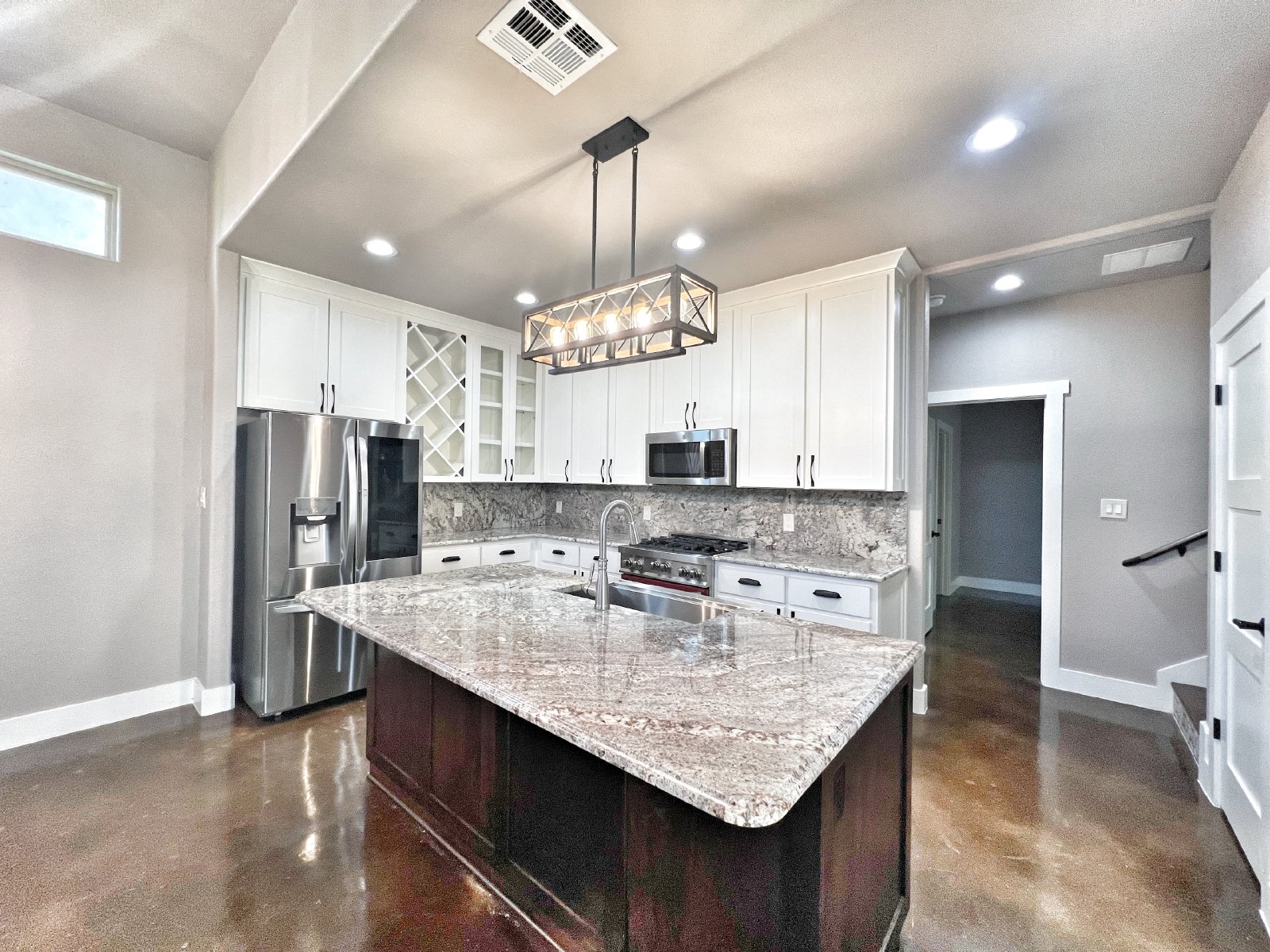 This stunning custom-built 2-story home is an absolute gem, nestled within a prestigious gated community walking distance from Gruene. As you step inside, your eyes are immediately drawn to the magnificent concrete flooring, spacious living area w/ custom floor-to-ceiling rock gas fireplace. The kitchen is a true chef's dream, boasting luxurious granite countertops, farm house sink, equipped with a gas range & open view to the living area. Just off the kitchen is the half bath for guests, as well as the primary bedroom, offering a private full bathroom featuring a double vanity, adding a touch of luxury, floor-to-ceiling tiled walk-in shower. Decorative custom staircase leading upstairs to the secondary bedrooms connected by a convenient jack and jill bathroom. Adjacent to the bedrooms is a thoughtfully placed laundry room. Enjoy a short walk to restaurants, shops and live music at Gruene Hall! This home has it all and so much more! **Lawn Care Provided by HOA** Animal limit 1-small dog under 25 lbs or 1-cat w/ Landlord approval.