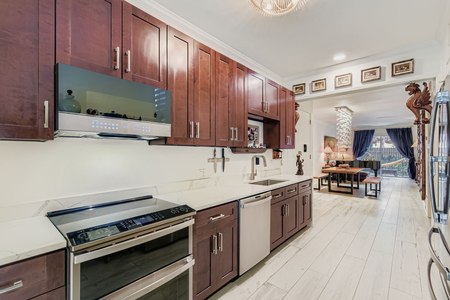 Triple diamond property for rent on the first floor, next to the pool with 2 covered parking spots. The association is onsite, has two pools, park, single tennis court, double pickleball courts and sits inside gated community. This move in ready 3 bedroom 2 bathroom is 1300sqft and offers commercial rate electricity, billed separately, and water included in the monthly rent. Close proximity to laundry room, with smart washer and dryers. GE appliances, quartz kitchen countertop with waterfall and under mount stainless steel large sink. Double USB GFCI outlet in kitchen for fast charging your devices, Smart bathroom exhaust in primary bathroom, Nest Smart thermostat, wooden shutters, updated double layer windows, open floor format, and AstroTurf for a low maintenance backyard. Great location and close proximity to the airport, restaurants, shopping and entertainment. Landlord will manage after move in.